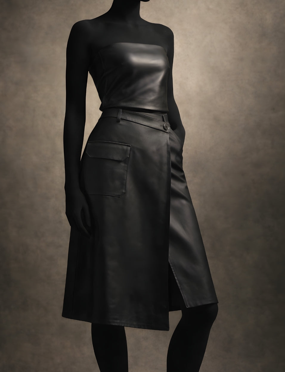 SHORAI ASYMMETRIC LEATHER SKIRT