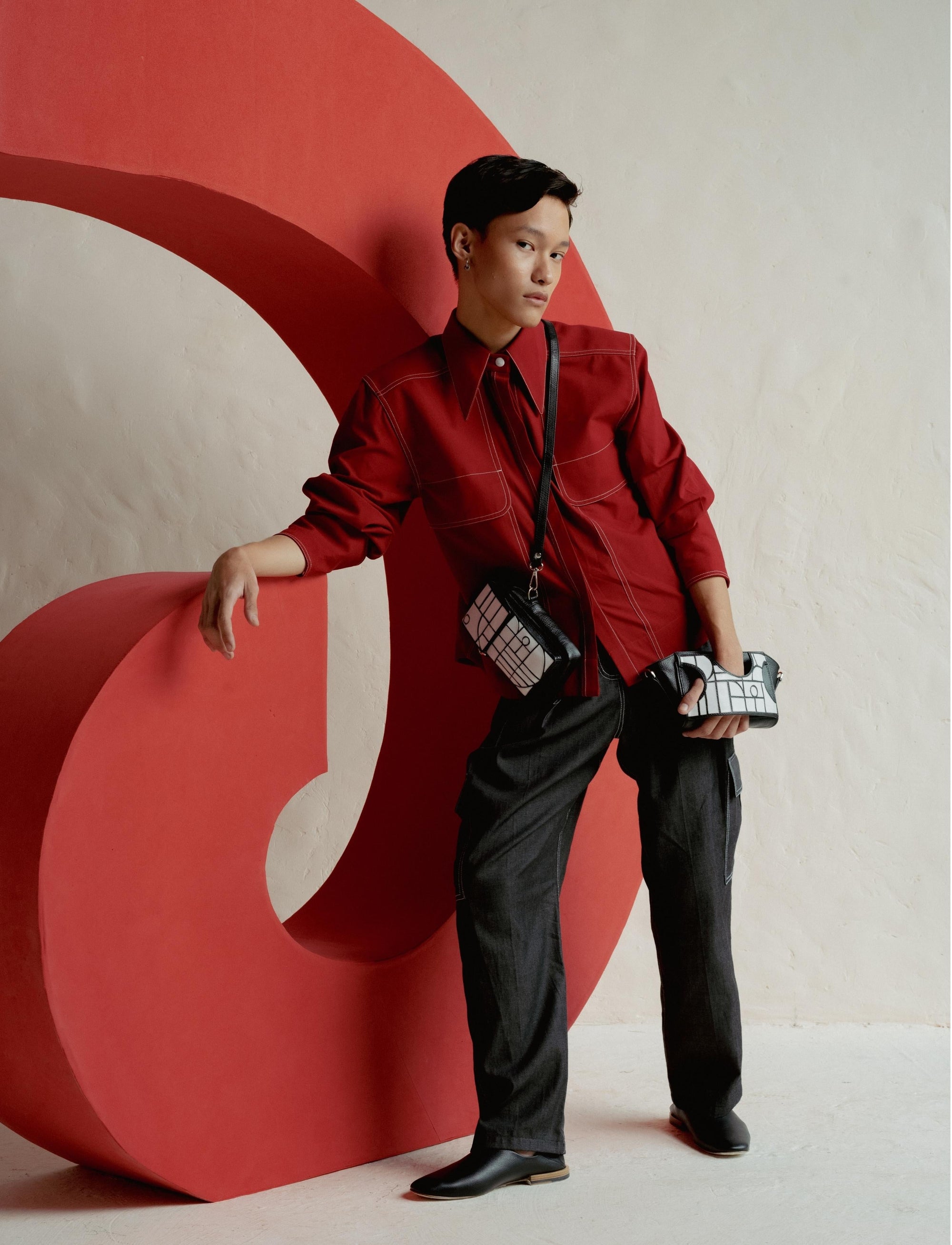 - Dynamic leather palm cuff that could serve as a wrist strap when styled as a clutch