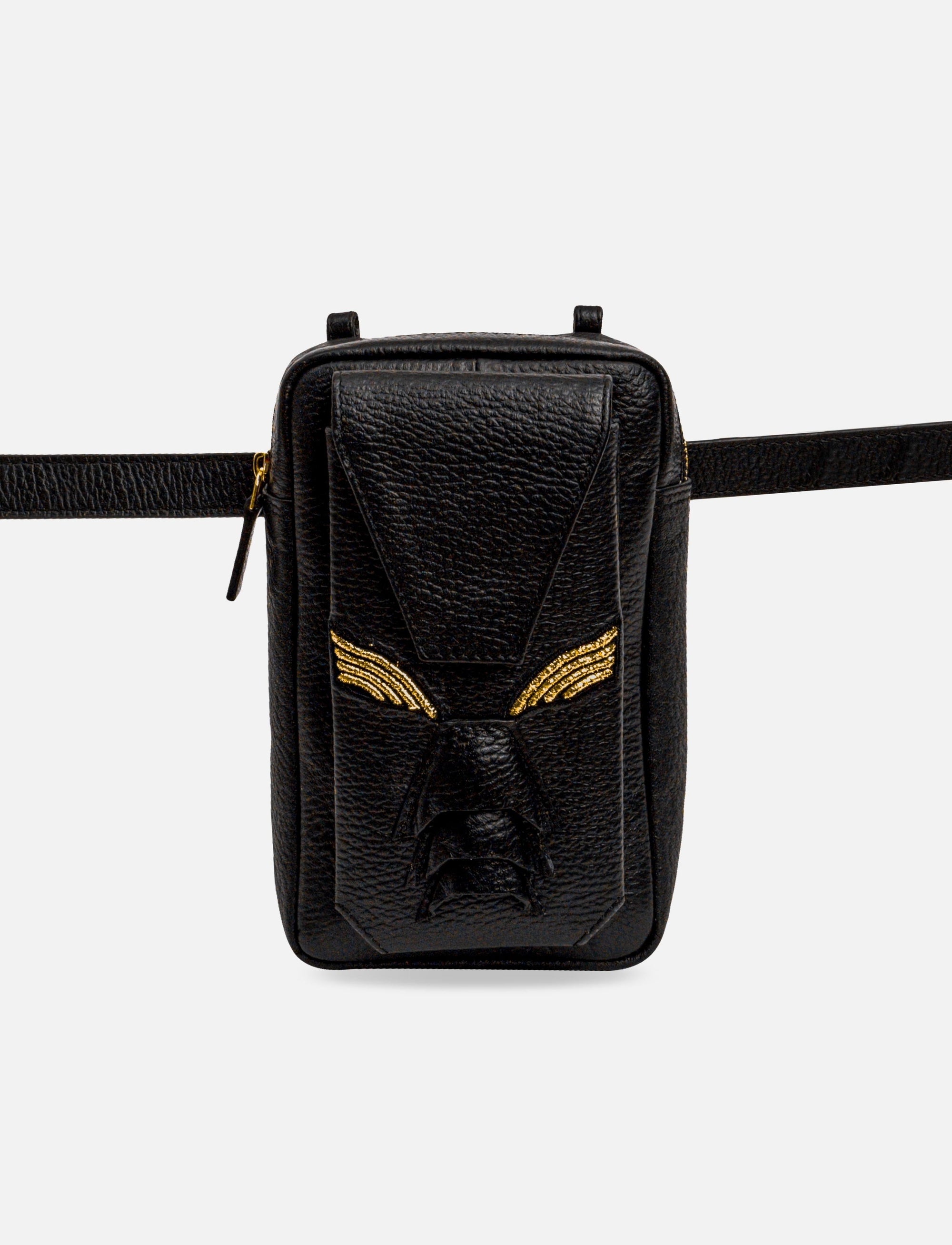 Allow the Rudra phone bag to be at your service while you set your hands free! With eyes marked in gold embellishment, they will forever guard your back and look out for you. A thigh bag with detachable staples and a spacious interior for all your essentials. Sway your hands up in the air while your essentials are safe inside the case as you travel around. The case is meant for anyone who connects with a sense of hands-on action within.